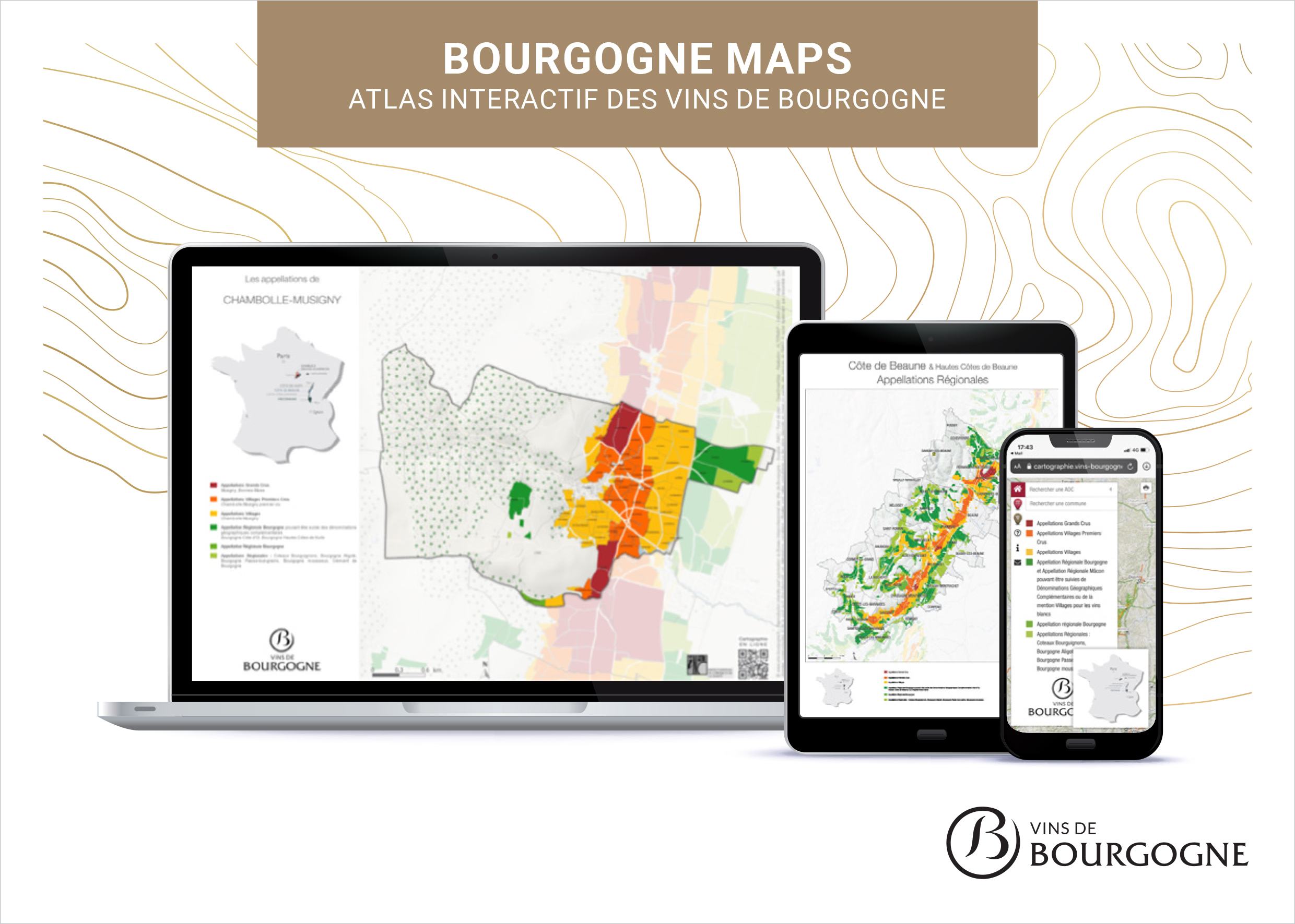 Interactive, it also allows users to access other contents on an appellation (texts, photos, etc.) or to find the list of estates or festivals registered on the Bourgogne Wines website.