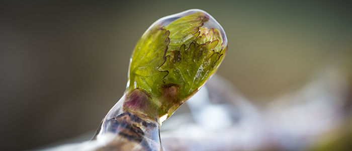 The young leaf shoot’s green tip is visible.